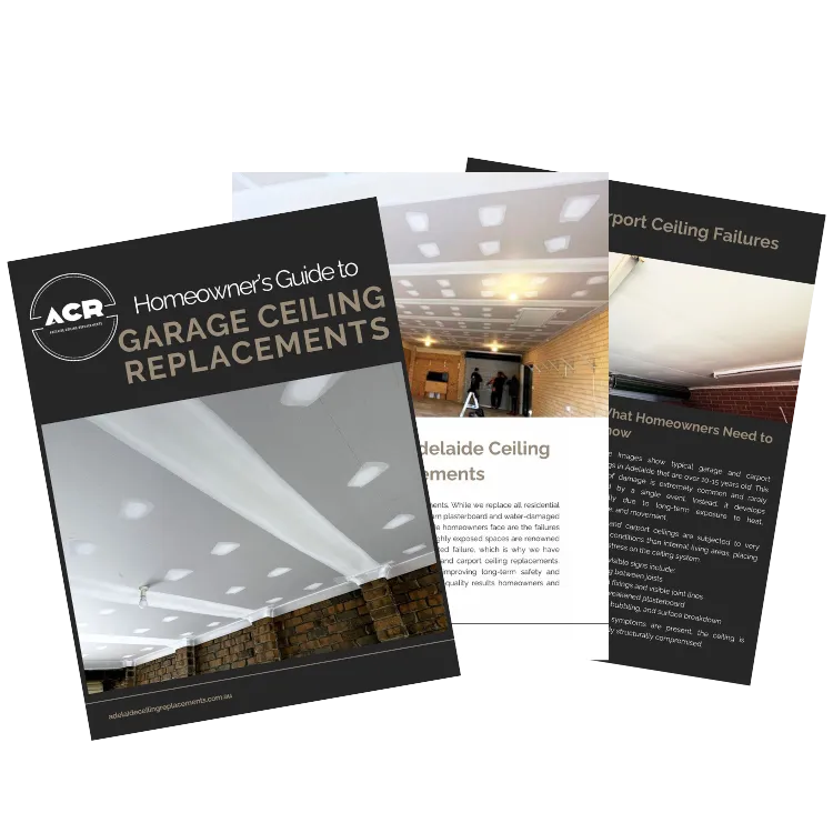 Adelaide’s trusted name in ceiling replacements. While we replace all residential ceilings, from heritage reproduction to modern plasterboard and water-damaged ceilings, the biggest challenge most Adelaide homeowners face are the failures of their garage and carport ceilings. These highly exposed spaces are renowned for sagging, moisture damage and age-related failure. After hundreds of garage ceiling replacements over the years we've become Adelaide’s go-to experts. Whether preparing a property for sale or improving long-term safety and presentation, our team delivers durable, high-quality results homeowners and real estate agents can rely on